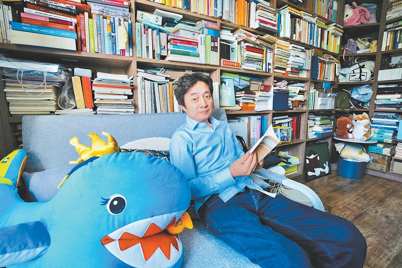 步入阿乙家的客厅,迎面而来就是一个书架,那些图书仿佛精神坐标一样,引领阿乙不断突破自我,踏上新途。