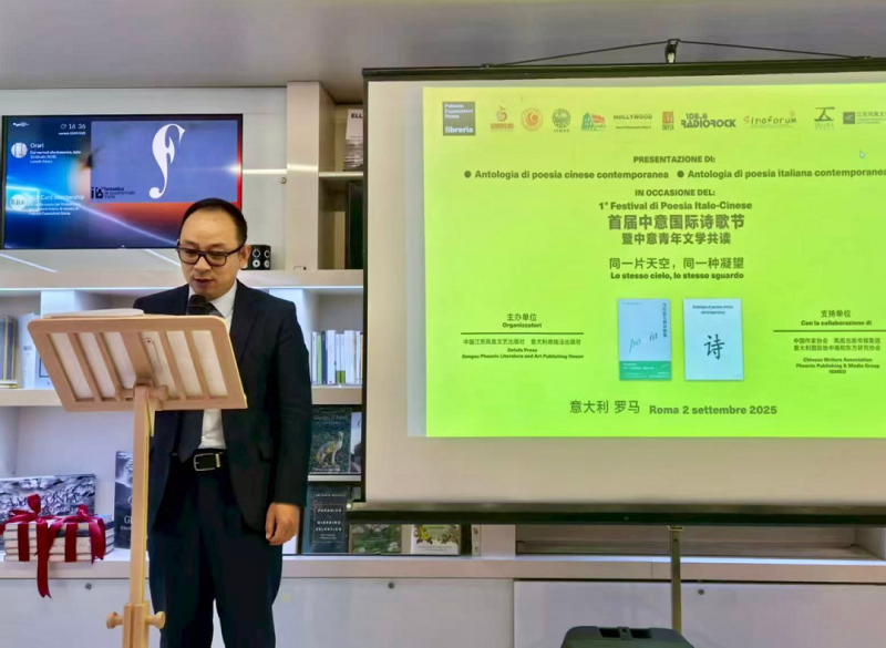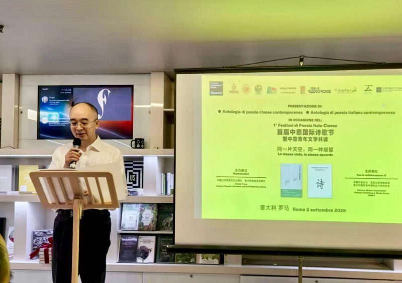 9月2日下午,首届中意国际诗歌节暨国际青年文学共读活动在意大利国家博物馆书店正式开幕。本次活动由中国作家协会、凤凰出版传媒集团、意大利国际地中海和东方研究协会支持,江苏凤凰文艺出版社(中国)与德陆法出版社(意大利)共同主办,旨在搭建高水平的诗歌交流平台,深化中意文化艺术的互鉴与交流,推动两国文学以及出版领域的友好合作。