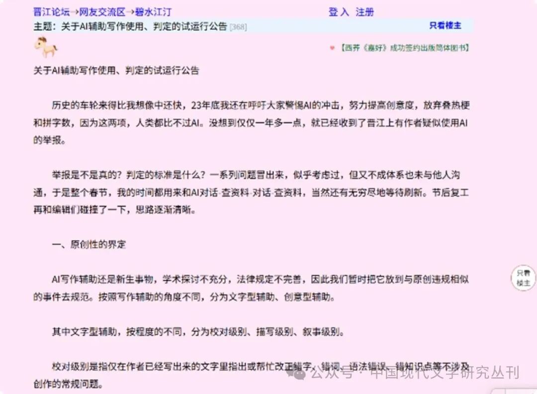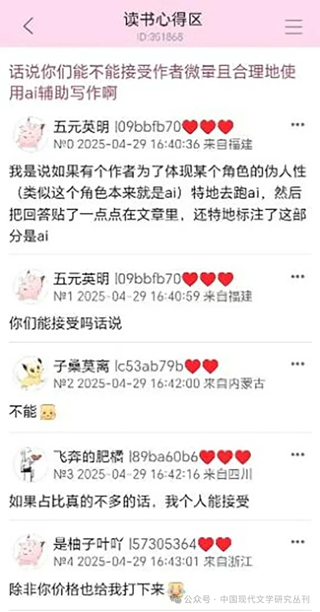 晋江文学城的读者们对能否接受作者使用AI辅助写作的探讨