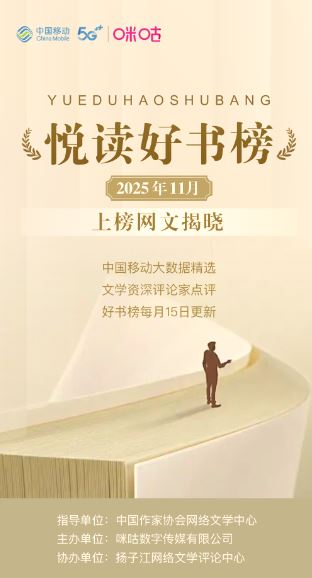 11月15日,由中国作家协会网络文学中心指导,咪咕数字传媒有限公司主办、扬子江网络文学评论中心协办的“悦读好书榜”第十一期榜单正式揭晓。