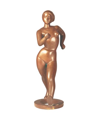 20世纪80年代末,中国奥委会向国际奥委会赠送了2件体育题材美术作品:朱成的雕塑《千钧一箭》和田金铎的雕塑《走向世界》,前者表现射箭运动员紧扣弓弦、蓄势待发的精彩瞬间,后者呈现竞走运动员在比赛中协调优美的运动英姿。这2件作品都在1985年首届中国体育美术作品展览上获得特等奖,在彰显艺术魅力的同时,也将中华体育精神带向世界。