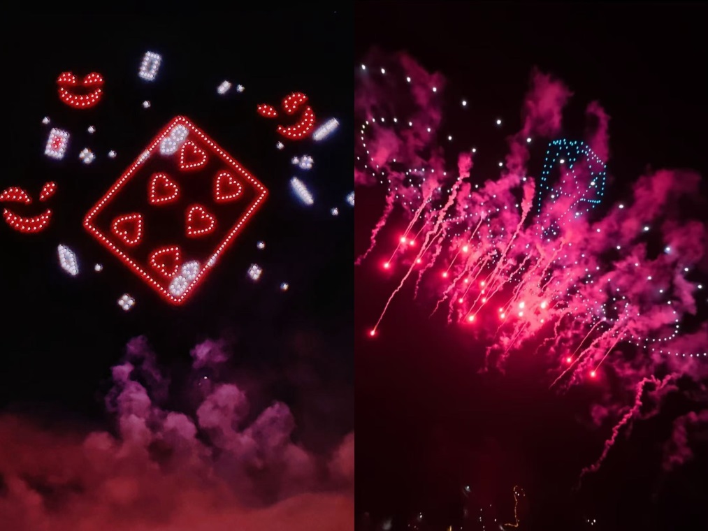1月17日,湖南浏阳《我不是戏神》专场“无人机+烟花”秀