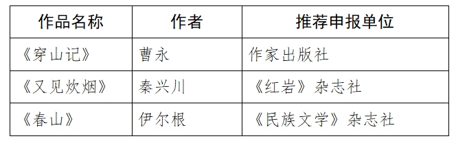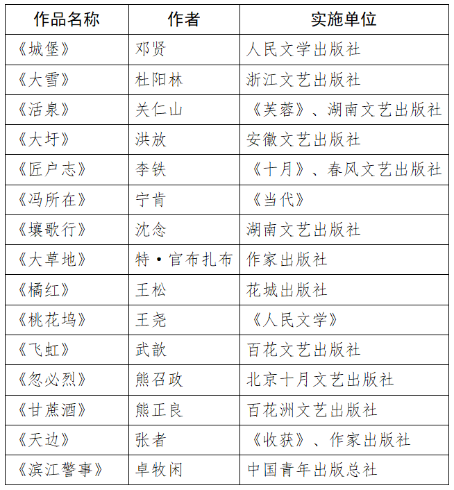 经专家委员会评审,中国作家协会书记处批准,确定了中国作家协会“新时代山乡巨变创作计划”2025年第1期3部入选作品、“新时代文学攀登计划”第六期15个入选项目,现予公布。