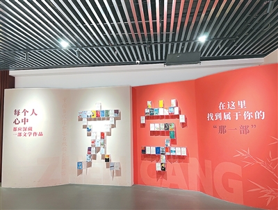 中国当代作家文学成就展上,由图书封面拼成的“文学”大字墙。