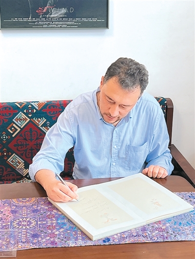 土耳其汉学家吉来在阿来清溪书屋留言。