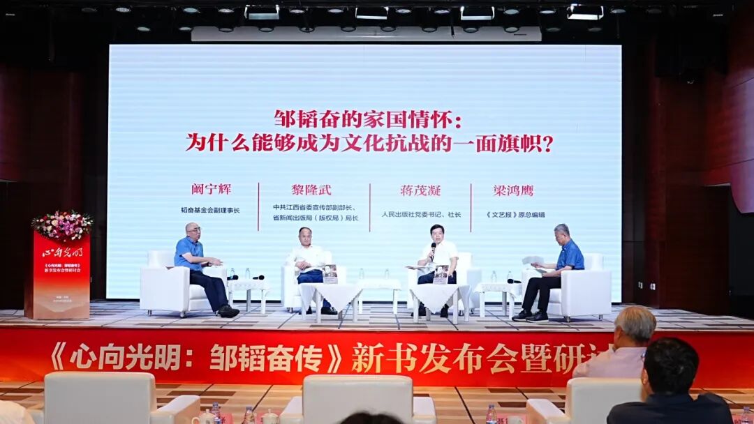 8月30日下午,由韬奋基金会、江西省出版传媒集团有限公司主办,中共鹰潭市委宣传部、鹰潭市余江区人民政府、江西人民出版社有限责任公司承办的《心向光明:邹韬奋传》新书发布会暨研讨会在京举行。此次会议恰逢中国人民抗日战争暨世界反法西斯战争胜利80周年、邹韬奋诞辰130周年。
