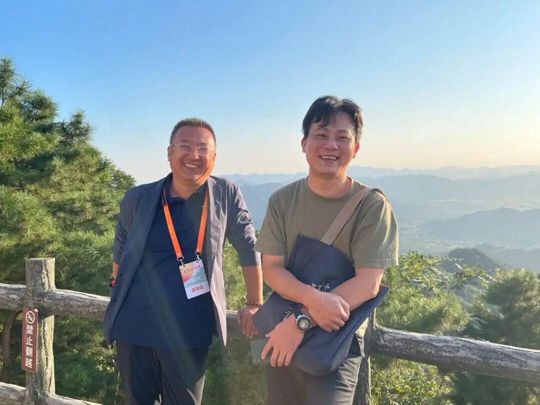 长城的背后,是一望无际的燕山山脉。中国诗人孔令剑、林森合影。尹超 摄。
