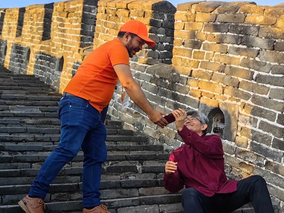 “置身于如此重要的历史遗迹中,我感受到强烈的震撼与感动”,哥伦比亚诗人法迪尔·德尔加多说,“虽然之前只在照片里见过它,但能亲临现场实在难以置信——这简直像做梦一样!”法迪尔·德尔加多站在承载着厚重历史的长城脚下,这种身临其境的体验,让她心潮澎湃。抚摸着垛口凹凸不平的石砖,她联想到石头在诗歌中的意象,“我首先想到的是与石头打交道——在诗歌创作中,石头具有特殊意义。每当凝视这块石头时,它那蕴含的力量总能激发我的灵感,让我得以用历史的石头来构建隐喻。”