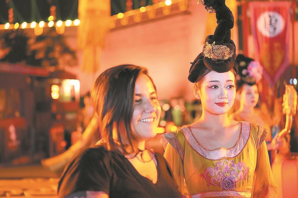 玻利维亚诗人杰西卡·弗罗伊登塔尔与“唐代仕女”合影。(主办方供图)
