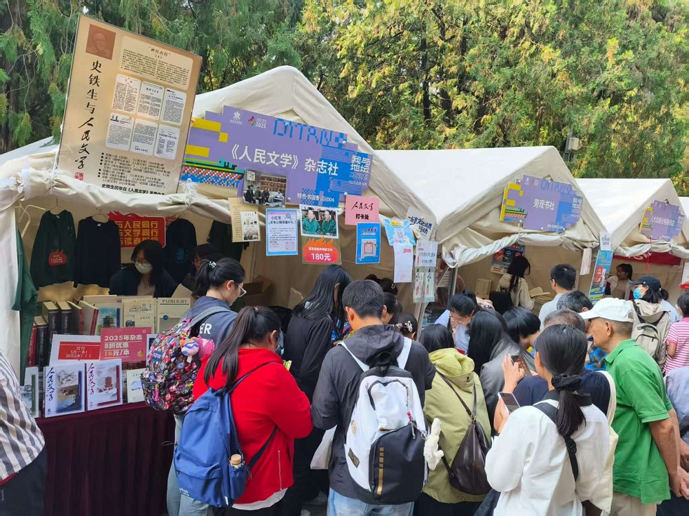 书香满京城,阅读暖金秋。9月12日至22日,为期11天的2025“我与地坛”北京书市在地坛公园举行。本次书市作为北京文化会客厅的常态化活动,累计接待读者超55万人次,共推出各类阅读文化活动100余场,发放图书惠民券近850万元,打造了一场全民共享、跨界融合的文化盛宴。《人民文学》杂志社参展了此次书市。