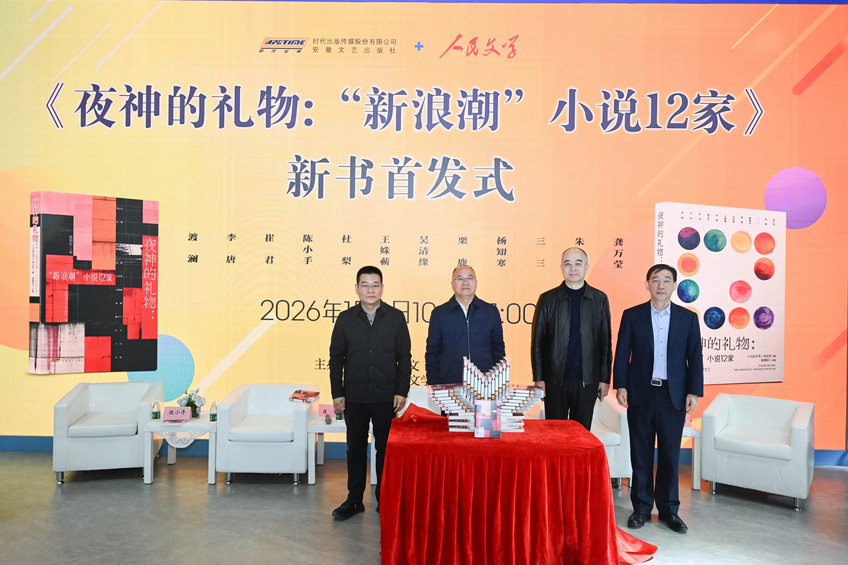 中国作家协会党组成员、副主席吴义勤,《人民文学》杂志社主编徐则臣,安徽省委宣传部副部长、安徽省新闻出版局(省版权局)局长方晓利,安徽出版集团党委书记、董事长、总经理,时代出版传媒股份有限公司党委书记、董事长董磊,安徽出版集团党委委员、董事,时代出版传媒股份有限公司党委副书记、总经理郑可,安徽出版集团党委委员、副总经理、总编辑朱寒冬,安徽省委宣传部印刷发行处处长刘凯,时代出版传媒股份有限公司党委委员、副总经理丁凌云,时代出版传媒股份有限公司党委委员、副总经理、总编辑张堃,安徽省委宣传部印刷发行处副处长许健,安徽省委宣传部出版管理处(传媒监管处)副处长滕海洋,时代出版传媒股份有限公司出版业务部主任阮怀伟,安徽文艺出版社社长姚巍以及青年作家代表李唐、陈小手、崔君、王姝蕲出席活动。《人民文学》杂志社编辑部(融媒体部)副主任、本书特约编辑梁豪主持活动。