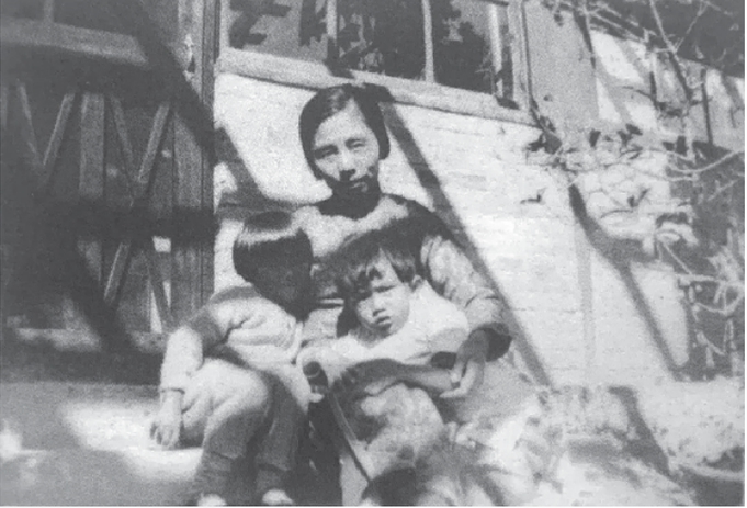 1935年秋,陈寅恪夫人唐筼与流求、小彭在清华园新西院36号院子花架下。