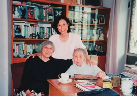 1990年,冰心(右)与韩素音(左)、葛翠琳(中)