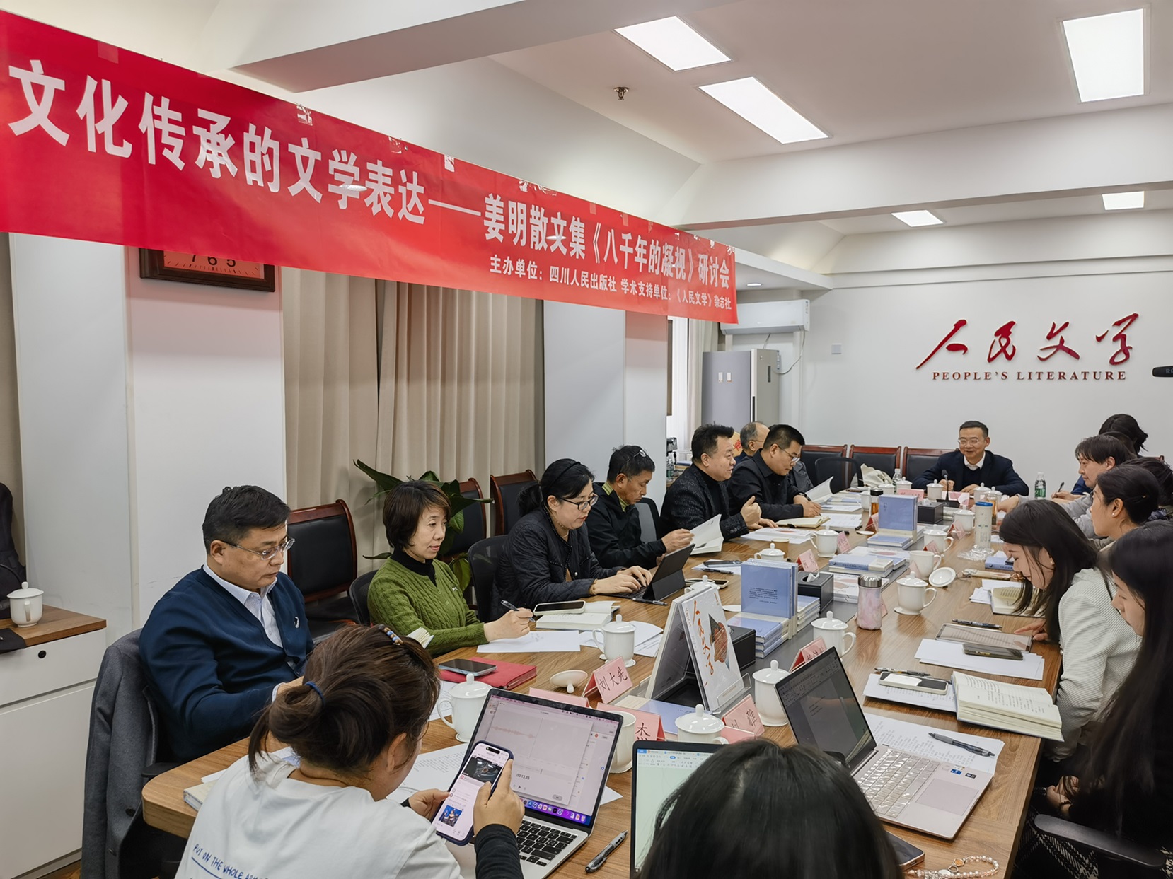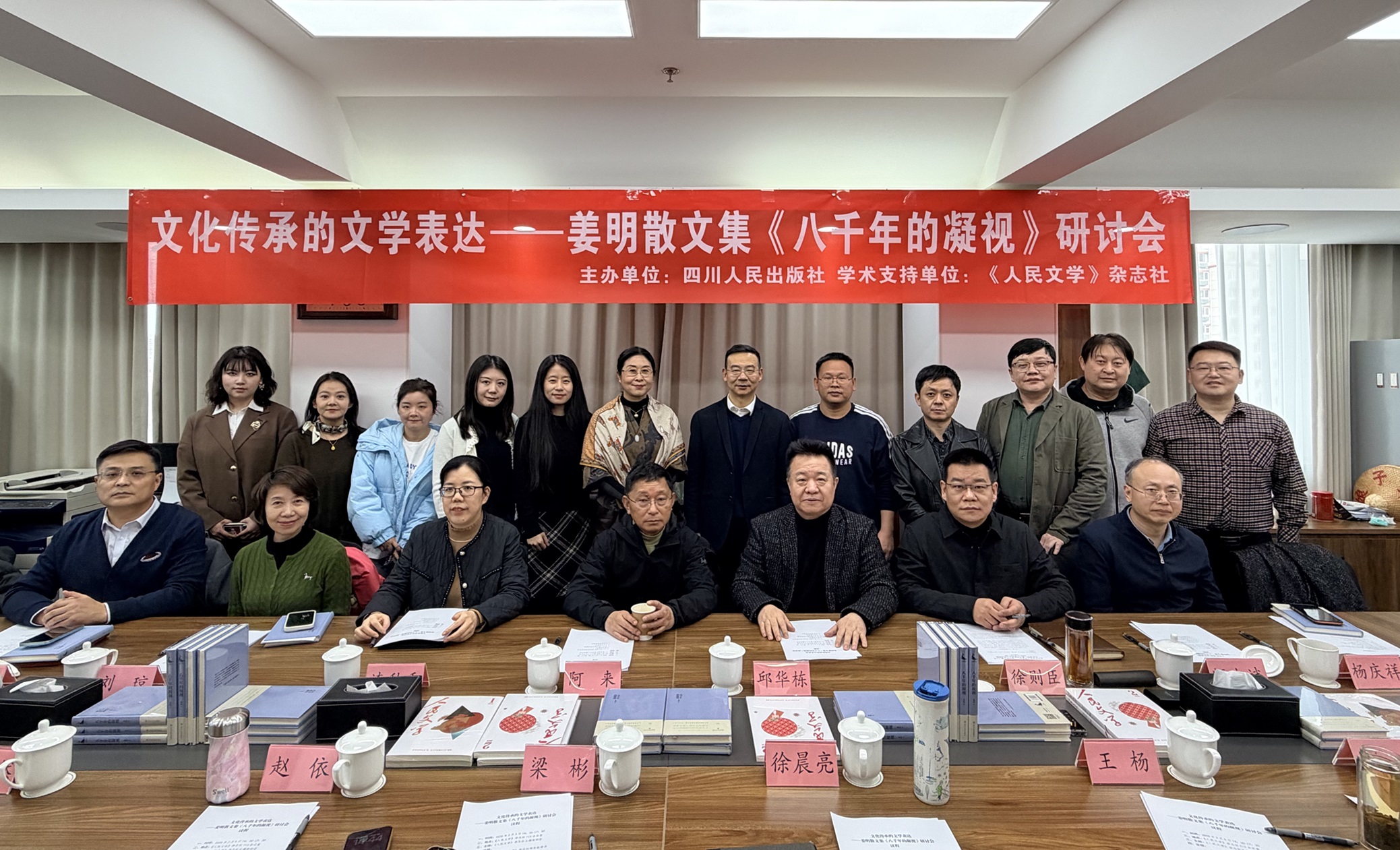 姜明的非虚构历史文化散文集《八千年的凝视》由四川人民出版社出版,该书收录长篇散文七篇,其中两篇于《人民文学》发表。其中,《八千年的凝视》同名散文曾获得2024年度人民文学奖散文奖,而《管领春风总不如》则发表于《人民文学》2026年第2期。徐则臣介谈到,姜明散文多以巴蜀大地的传统文化,尤其是上古文明为切入点,是对文化传承的文学表达的探索与践行。这种文化传承的文学表达,代表着新大众视角下对文化传承的文学书写,而这也正是今天研讨会的主题。