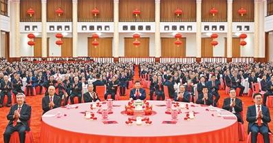 中共中央国务院举行春节团拜会 习近平发表讲话 代表党中央和国务院,向全国各族人民,向香港特别行政区同胞、澳门特别行政区同胞、台湾同胞和海外侨胞拜年 李强主持 赵乐际王沪宁蔡奇丁薛祥李希韩正出席