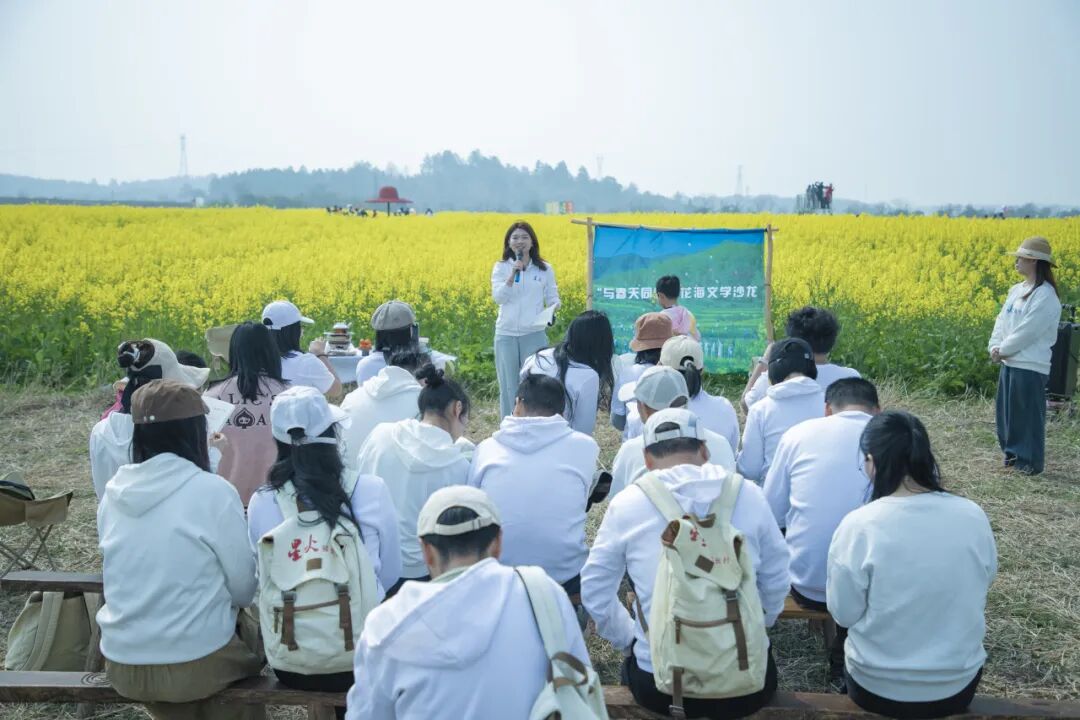 人气最旺的是“与春天同频”花海文学沙龙,有三十多位游客被《星火》文青们感染,纷纷驻足献声朗读《星火》诗文。有游客说在油菜花海里邂逅《星火》,是这个春天最大的惊喜。