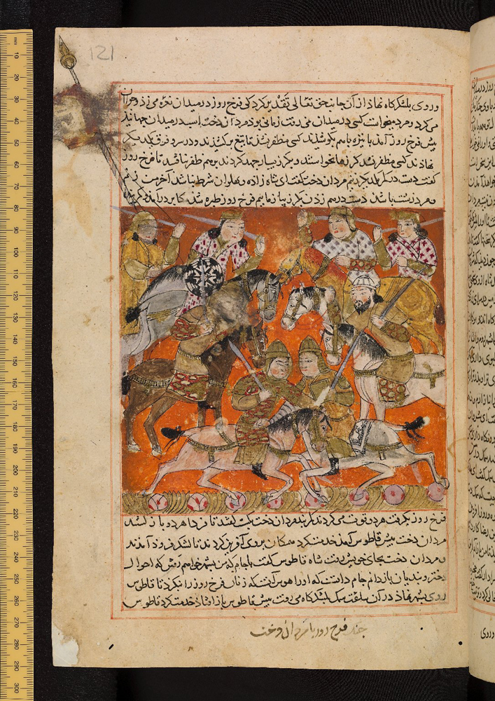 这份手稿中提到了两位人物:萨达盖(Sadaqi)和法拉玛尔兹(Farāmarz)。前者被描述为故事的原始叙述者,后者则是实际的编纂者。有趣的是,历史学家玛丽娜·盖拉德(Marina Gaillard)指出,“萨达盖”这个名字可能是一种文学虚构,反映了当时锡斯坦地区不同埃亚尔派系之间的政治博弈。而编纂者法拉玛兹通过借用“萨达盖”敌对派系领袖的名字“萨玛克”来命名主人公,或许正是为了彰显一种超越派系之争的、普世的“侠义精神”(Javānmardī)。这种复杂的成书背景,使得《萨玛克·埃亚尔》不仅是一部文学作品,更是一份珍贵的历史文献,折射出那个时代错综复杂的社会关系。